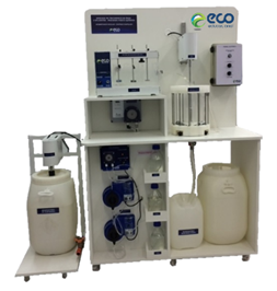 BANCADA TRATAMENTO DE ÁGUA E EFLUENTE: Processo de Decantação Físico-Químico-Contínuo e Batelada - Modelo Compacto-SC (Sedimentador Circular e Teste de Jarros) é utilizada para estudos a realizações de ensaios de tratamento de águas e efluentes por processo físico-químico em processos contínuo contemplando as etapas operacionais de floculação e decantação, onde será utilizado sedimentador circular com raspador de fundo e, em processo batelada com testes de jarros e de cinética de decantação por proveta graduada.