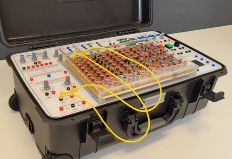 A Maleta Didática para Estudo de Eletrônica Geral é um equipamento portátil e robusto, ideal para o ensino prático de eletrônica digital e analógica. Com estrutura resistente a impactos, água e poeira, ela oferece uma fonte de alimentação completa, componentes integrados (displays, buzzer, LED, speaker, simulador lógico, décadas de R, L e C) e módulos didáticos para portas lógicas, circuitos combinacionais e sequenciais, componentes analógicos e amplificadores. É indicada para cursos de Engenharia (Elétrica, Eletrônica, Computação), técnicos em Eletrônica, Automação e Eletrotécnica, e disciplinas como Eletrônica Digital, Eletrônica Analógica, Sistemas Digitais, Circuitos Elétricos e Instrumentação.