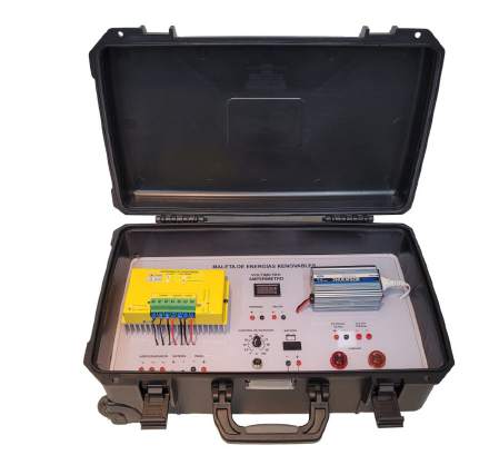 A Maleta Didática para Estudo de Energias Renováveis é um equipamento portátil para o ensino prático de sistemas off-grid, simulando a geração, armazenamento e consumo de energia a partir de fontes renováveis como solar e eólica. Ela inclui mini aerogerador, placa solar, controlador de carga, bateria e cargas de teste para análise de desempenho e autonomia. É indicada para cursos de Engenharia (Elétrica, Energias, Controle e Automação, Produção), Técnico em Energias Renováveis e Eletrotécnica, e disciplinas relacionadas a fontes alternativas e sustentabilidade energética.