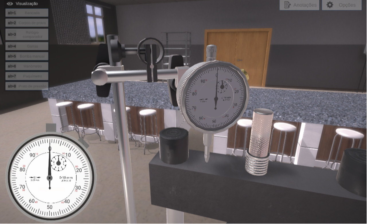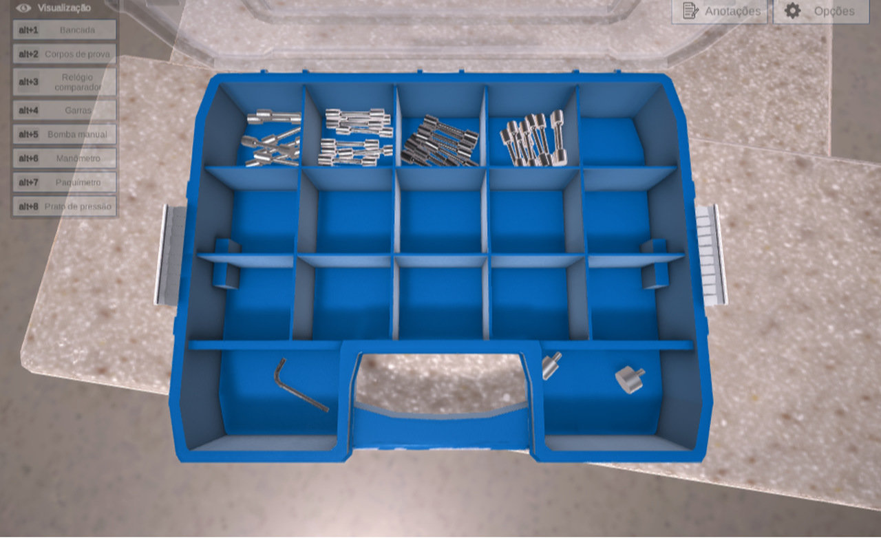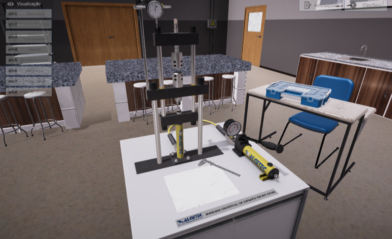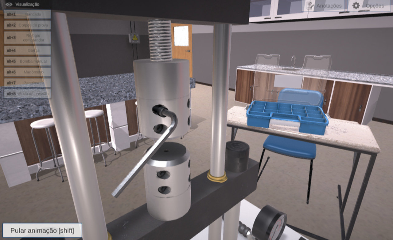 Em momentos estratégicos do conteúdo, o ambiente virtual de aprendizagem sinaliza a necessidade de uma prática no Laboratório Virtual. Ao concluir com sucesso as atividades virtualizadas, o aluno estará pronto para realizar experimentos no equipamento físico fornecido pela ALGETEC.